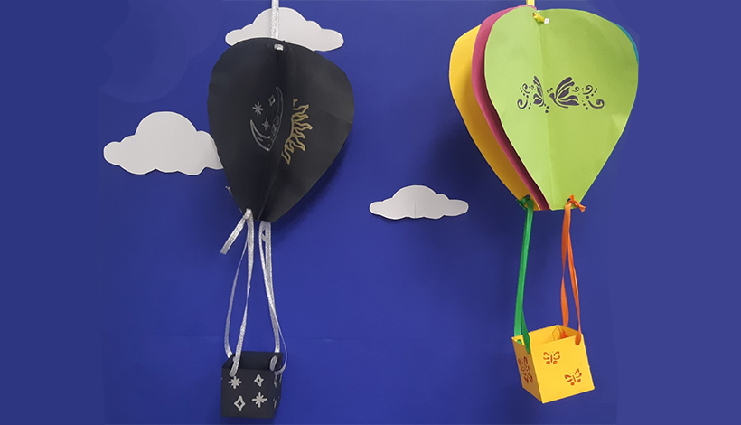 Découpe, colle et colorie pour donner vie à ta propre montgolfière.